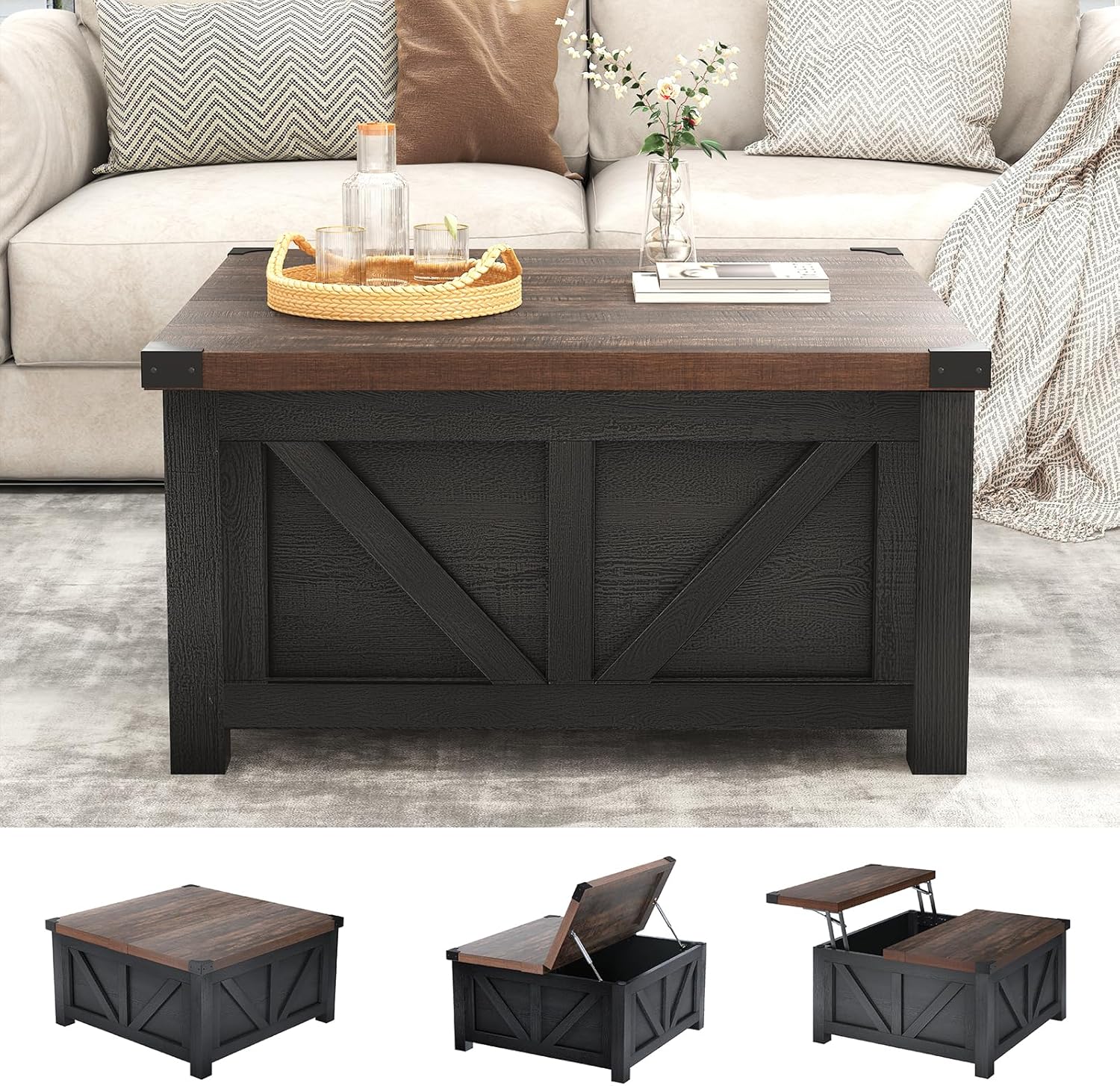 - Farmhouse Charm: Our black square farmhouse lift top coffee table with storage is crafted from its original wood grain, classic farm barn shape design with metal corners decor to add a retro accent. Its farmhouse-style design complements modern, rustic, industrial, or vintage decor. The unique square shape is just the right size to not only complement your sofa well but also fit well in both small and large spaces.