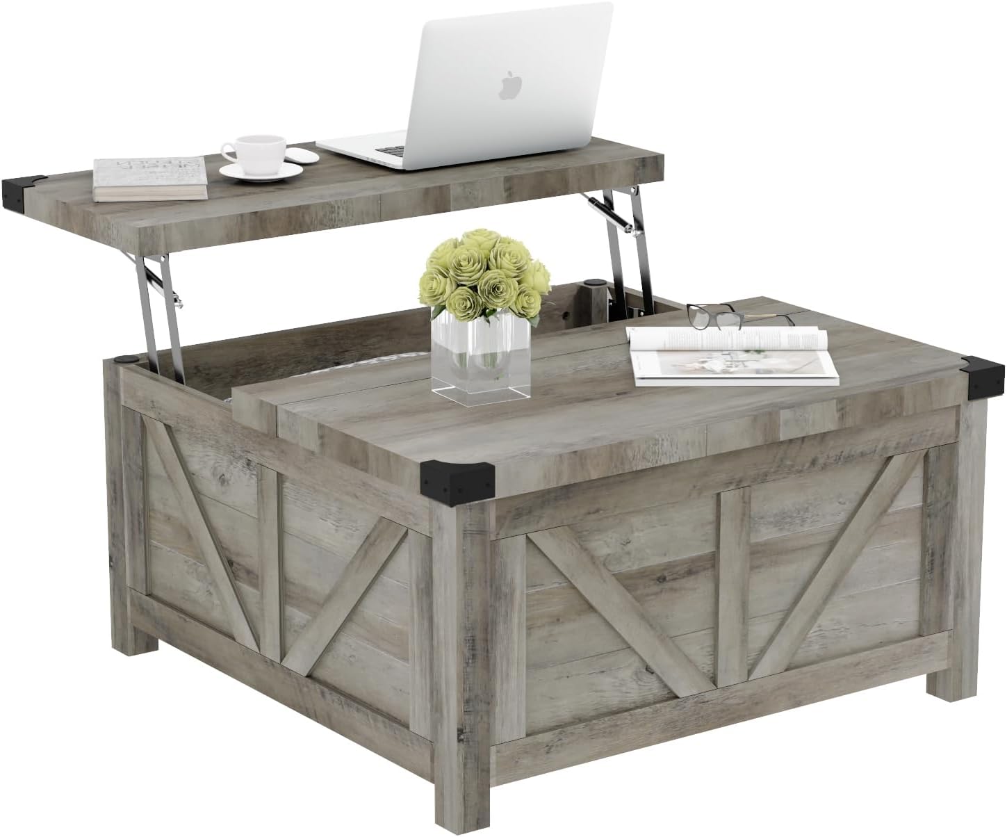- Farmhouse Charm: Our grey square farmhouse lift top coffee table with storage is crafted from its original wood grain, classic farm barn shape design with metal corners decor to add a retro accent. Its farmhouse-style design complements modern, rustic, industrial, or vintage decor. The unique square shape is just the right size to not only complement your sofa well but also fit well in both small and large spaces.