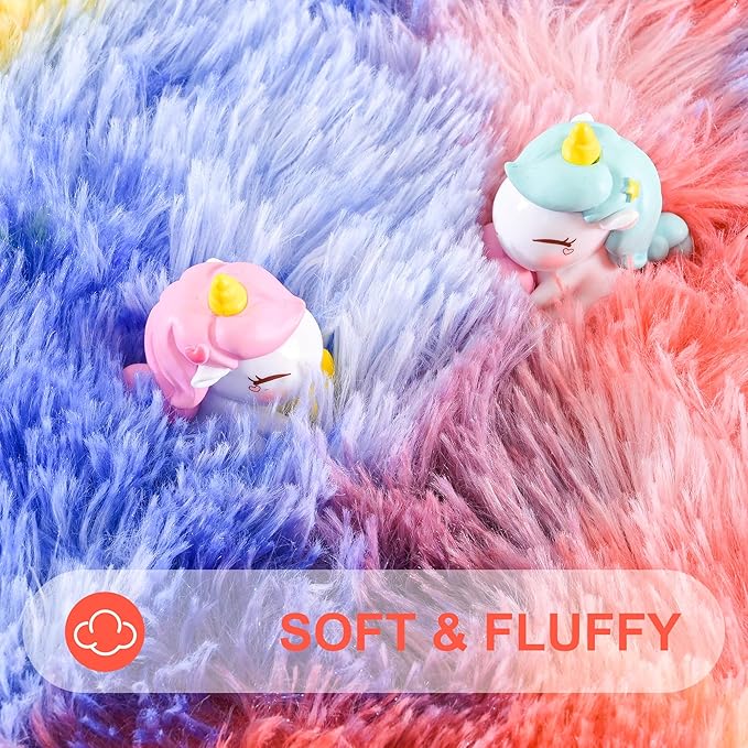 - Unique Style Rainbow Rug:This fluffy rainbow rug uses an advanced dyeing process and bright colors are randomly distributed.It is a beautiful addition to nurseries, dorms, classrooms, playrooms, hallways, girls' rooms, party decorations, offices, etc. Add color and fun to your home with this rainbow rug.