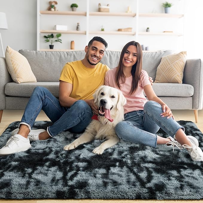 Noahas Fluffy 4x6 Area Rugs for Bedroom Living Room,Tie-Dyed Black and Grey Thick Shag Throw Floor Carpet,Soft Shaggy Bedside Non-Slip Plush Dorm Nursery Kids Rug