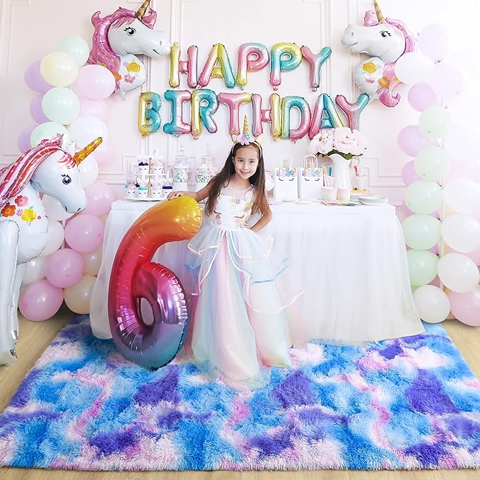 - Unique Style Rainbow Rug:This fluffy rainbow rug uses an advanced dyeing process and bright colors are randomly distributed. It is a beautiful addition to nurseries, dorms, classrooms, playrooms, hallways, girls' rooms, party decorations, offices, etc. Add color and fun to your home with this rainbow rug.