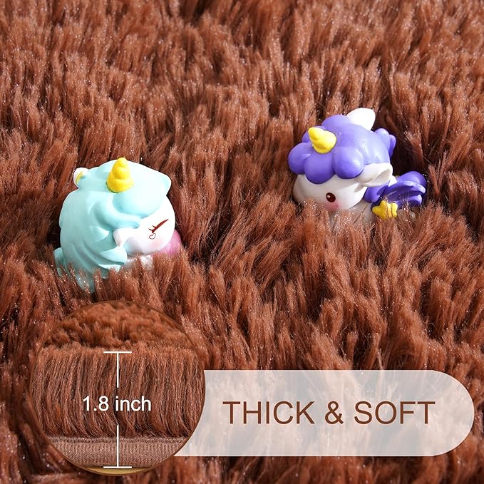 Noahas Fluffy Brown Area Rugs for Bedroom Living Room,4x5.3 Feet Thick Shag Throw Floor Carpet,Soft Shaggy Non-Slip Plush Dorm Nursery Kids Rug Home Decor Aesthetic