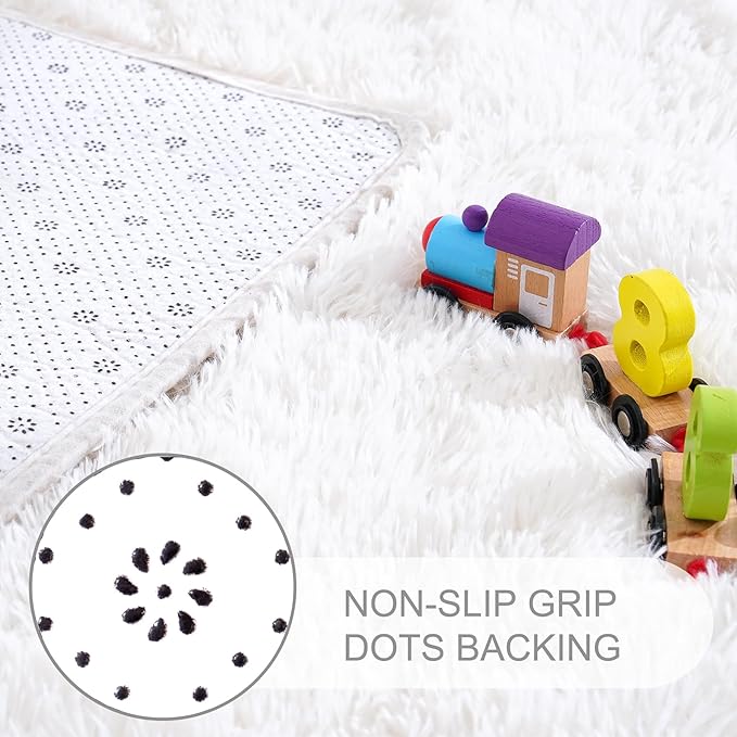 - Upgraded Non-Slip Backing:The high-density anti-slip particle design ensures the fuzzy rug is firmly fixed, and the thickened felt base increases friction. It can reduce the risk of slipping even in busy traffic areas