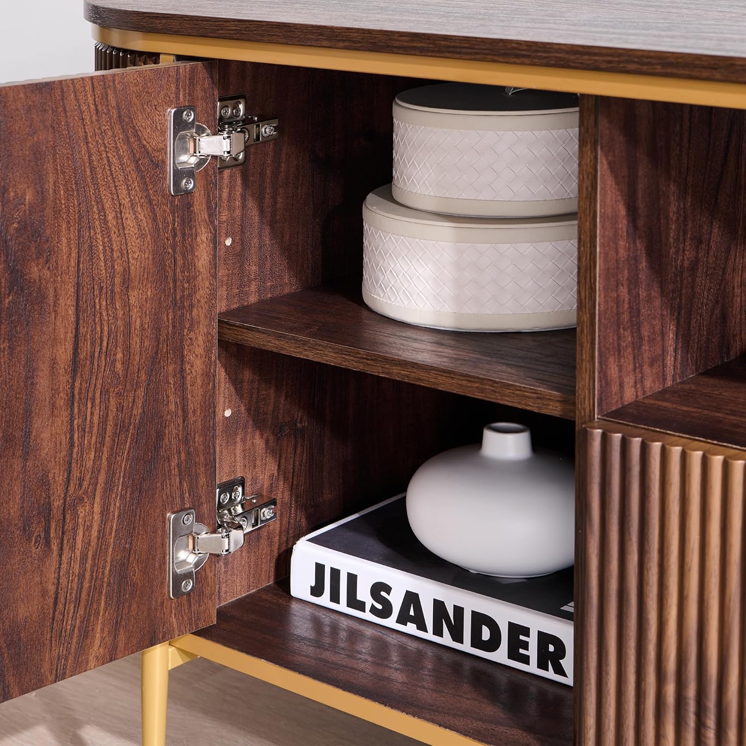 - DURABLE, WELL-FINISHED: Fluted panels are manufactured using blister molding techniques known for their high quality and consistency. The faux marble top is made of melamine veneer, which not only has a delicate texture, but also ensures long-lasting durability, water resistance and easy maintenance. And, the gold metal handles and cylindrical legs add to its contemporary vibe, creating a personalized and distinctive aesthetic.
