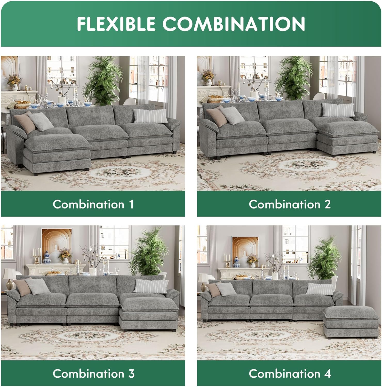 - YESHOMY Sectional Modular Sofa, L Shaped Chenille Fabric Couch with High Supportive & Soft Sponges and Removable Ottoman, Sleeper Comfy Upholstered Furniture for Living Room, Grey